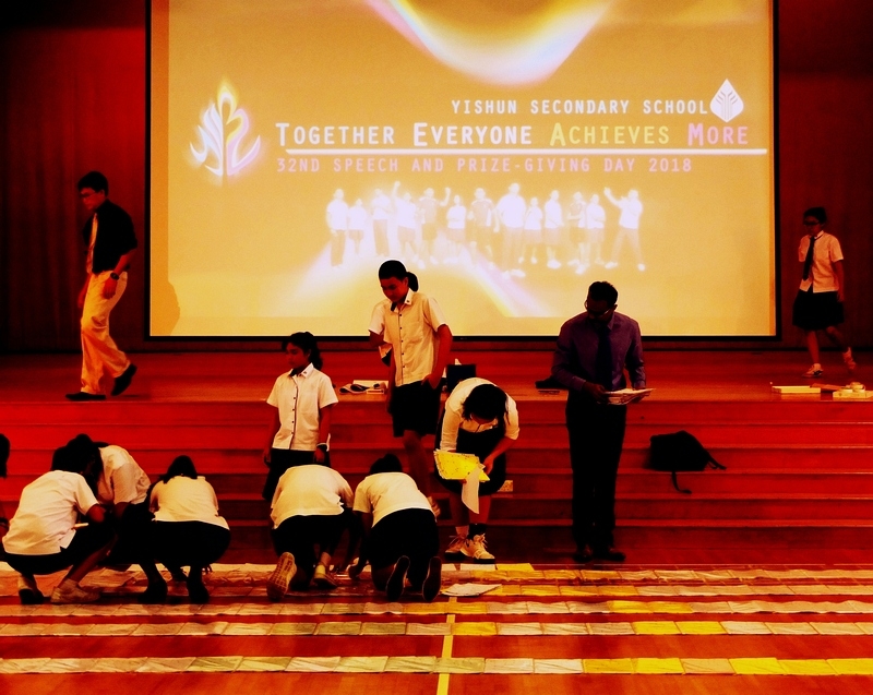 As a community service, Yishun Secondary School wanted to make some activity books for the elderly residents of Sree Narayana Mission. On 29 Mar 2018,  around 1,000 join-the-dot books were made by the students. Before giving them away, the books were laid out in the school hall to form the school’s 32nd anniversary logo. The arrangement measured 6.9m by 9.5m.