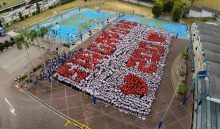 Student and staff of Maris Stella High School moved into their allocated positions on 8 Aug 2019 to form the words ‘SINGAPORE 200’ to commemorate the nation’s Bicentennial, as well as National Day. With both the Primary and Secondary students taking part, the red and white human formation was accomplished with 2,580 people.
