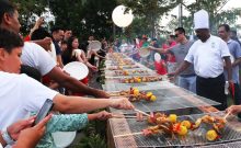 As part of the National Day Celebration and engagement with residents in the vicinity, Kim Seng CC YEC displayed the Singapore flag made of sushi. 306 pieces of the sushi, made with red crabmeat and white rice, formed the 1.08m-by-0.55m flag. The sushi and some fruits were later given out to participants as lunch.