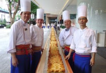 On 17 Jun 2014, Royal Plaza on Scotts presented a 30m long bread and butter pudding baked by a team of 32 chefs. The team used 150 loaves of white bread, 220 litres of cream, 75 kg of whole eggs and 80 litres of milk, and spent 55 hours baking it. The event raised funds for Metta Preschool @ Punggol, ...