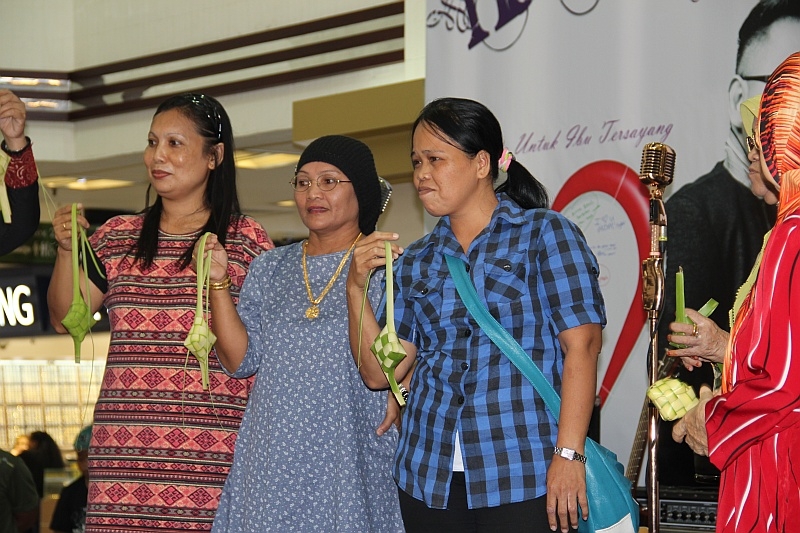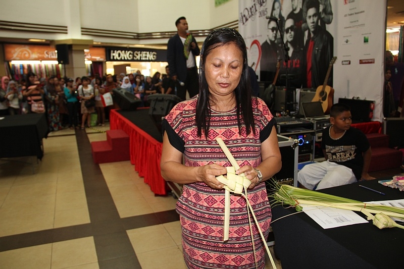 Presented by Housing Development Board, Mother’s Day was celebrated with shoppers at Joo Chiat Complex on 10 May 2015. With a line up of activities, games and entertainment, one contest that attracted many mothers to participate was ketupat-weaving. After a few rounds of practice, four participants were selected for the final round. The emerged winner was Nona Folina who effortlessly weaved the coconut leaves into a ketupat in 43.84 sec.