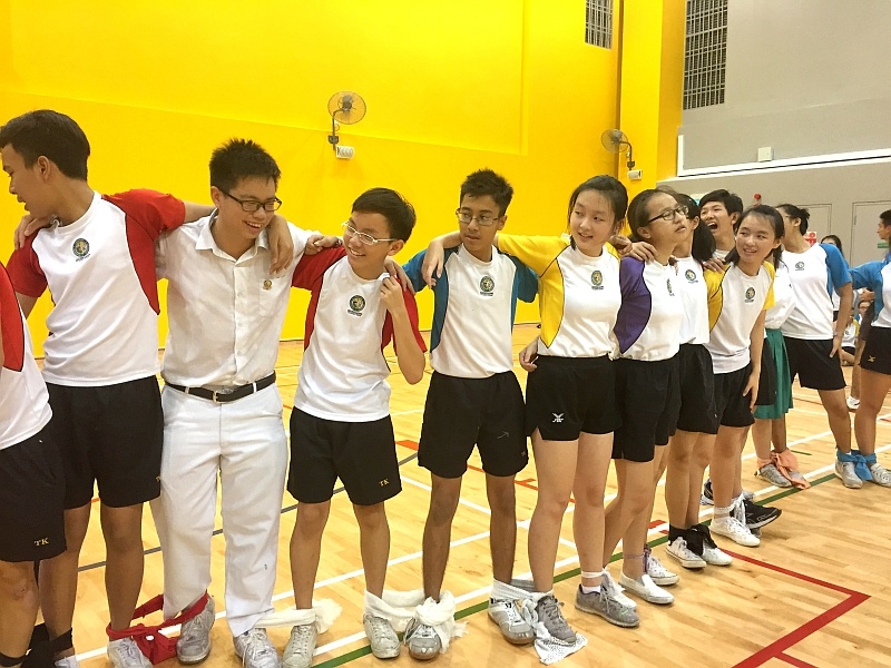 2 Oct 2015 was graduation day for the secondary four cohort of Tanjong Katong Secondary School. That morning, the students gathered at the indoor sports hall and took part in a 21-legged race with adjacent ankles tied together with a piece of cloth and ran a distance of 20m. 280 students completed the race.