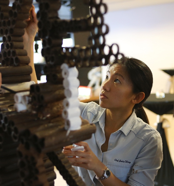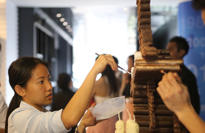 For the launch of its Future Office at its Raffles City building as well as its 52nd anniversary on 3 Aug 2013, the Singapore Economic Development Board (EDB) engaged Chef Janice Wong and her team from 2am:lab to create a chocolate sculpture. Using chocolate tubes they formed the 60 cm by 79 cm-high Chinese word ‘ju’ (gather) to emphasise Singapore strategic location for funds and talents to be gathered here. Janice Wong was recently named Asia’s Best Pastry Chef at the inaugural Asia’s 50 Best Restaurants awards.