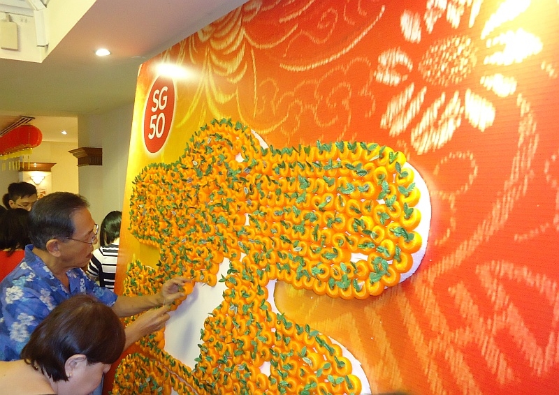 West Coast CCMC organised a Chinese New Year dinner for its residents at Ban Heng Pavilion Restaurant on 1 Mar 2015. At the event, each diner made two ‘oranges’ from plastic mesh bags which were later used to form the Chinese character ‘ji’ meaning ‘auspicious’. About 1,280 ‘oranges’  measuring 1.8m by 1.8m were stuck to a board.