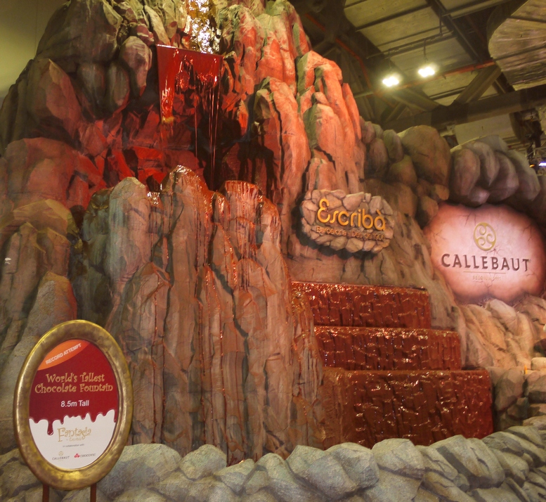 Visitors stepped into a spectacular and surreal world of chocolate fountains, floating cotton candy and a chocolate zoo at Fantasia by Escriba. The confectionery theatre extravaganza came to life at the Marina Bay Sands on 22-24 Aug 2014. Renowned Barcelona-based pastry couple, Christian Escriba and Patricia Schmidt, put together the larger-than-life masterpieces made from sweets and other confectioneries and a beautiful spread of sweet and savory treats. The grandest piece on display was the Callebaut Falls which would be submitted to Guinness for the world’s tallest chocolate fountain record. With a cascade of four tons of molten chocolate, it was 8.53m high and 5.44m wide.