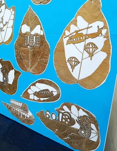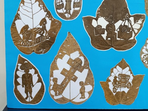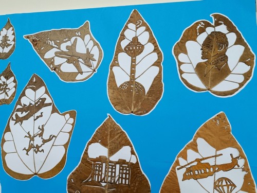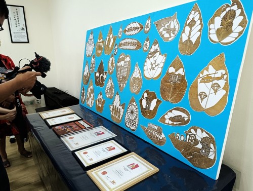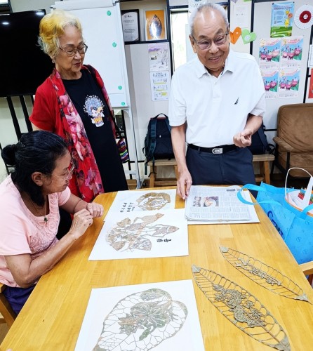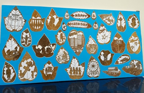 Senior citizens who attended Mr Ong’s class on leaf carving at Tzu Chi SEEN @ Nanyang, decided to put up a display of their works to mark Singapore’s milestones in the last 60 years. Unveiled on 15 Aug 2025, the collage of 31 intricately carved works, measured 1.8m by 0.9m.