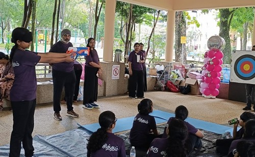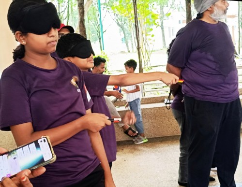 Guru Siththam Perunkudil has a unique teaching methodology that help children develop their natural Extra-Sensory Perception that will serve them throughout their lives. 15 youngsters from 7 to 17 years trained by the school demonstrated their abilities to cycle, play cricket, football, skating, badminton, basketball, chess and target shooting with a toy gun and laser pointers, while blindfolded. They demonstrated their abilities at Punggol Central on 7 Sep 2025. Previously they had demonstrated their archery abilities.