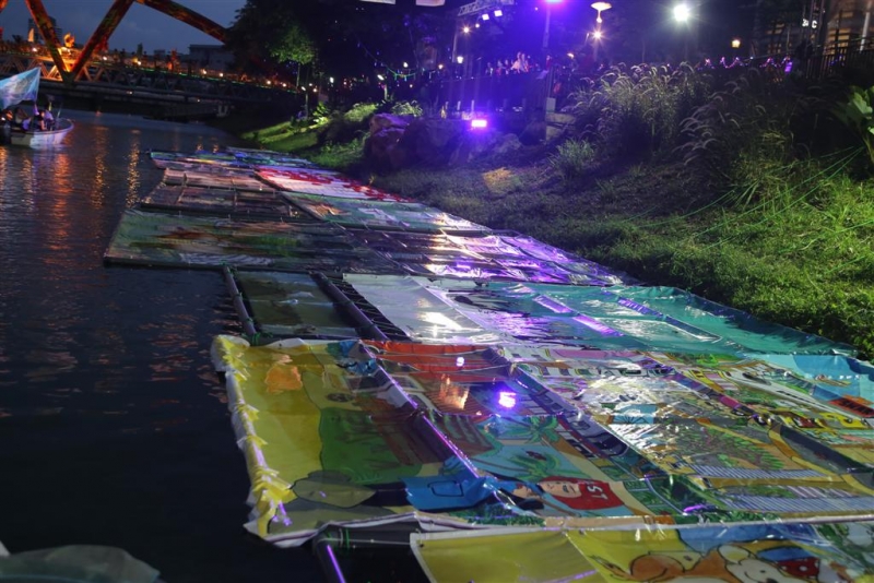 In conjunction with the PAssionArts Festival 2015, the residents of Kolam Ayer Constituency presented Singapore’s first ever water art gallery. 24 artworks were painted by 500 Kolam Ayer residents over a series of workshops from May 2015. They were laid on plastic pipes and floated on the Kallang river on 25 Jul 2015.