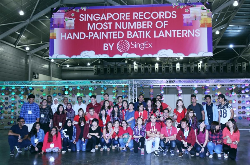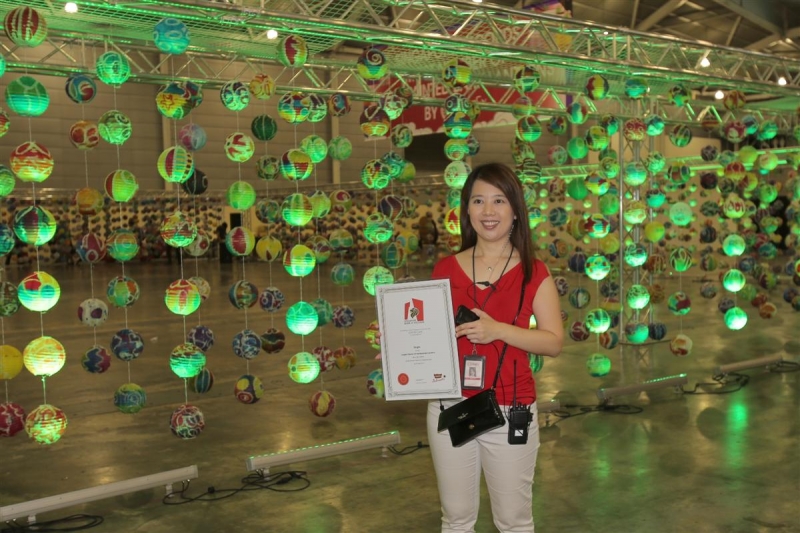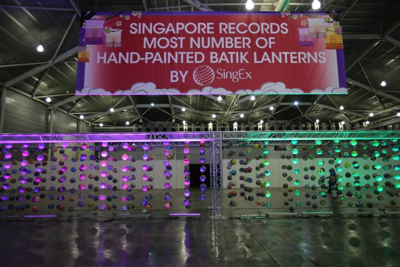 Throughout the Mid Autumn Festival held at the Singapore Expo on 18-20 Sep 2015, visitors could participate in painting lanterns under the guidance of batik artist Ika Zahri. His team applied wax to parts of the lanterns and participants could bring out batik designs on the lanterns. At the end of the exhibition, 2,149 lanterns were completed. The record attempt was organised by SingEx Venues, managing company of the Singapore Expo.