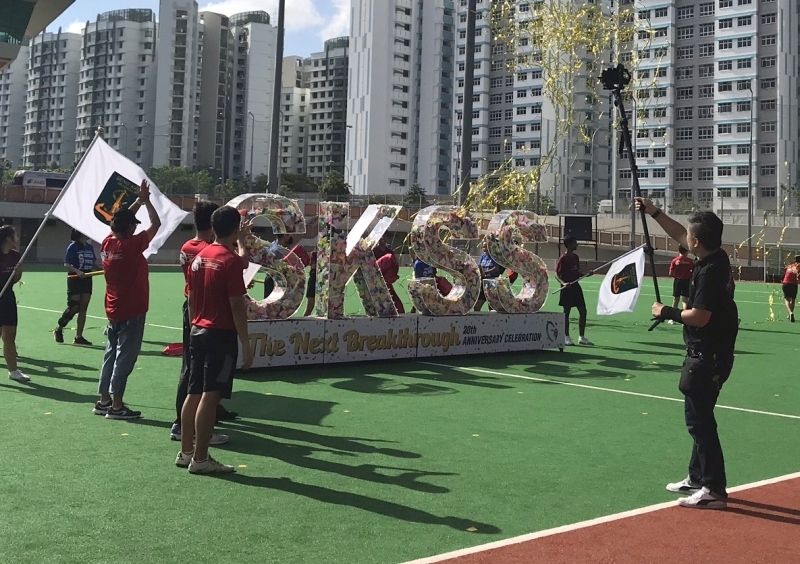 Seng Kang used to be a fishing port. Some weeks earlier, students of Seng Kang Secondary School folded origami sailboats to mark its 20th anniversary. 22,161 of the origami sailboats were placed inside transparent acrylic containers constructed in the letters ‘SKSS’ and launched at Sengkang Hockey Pitch on 23 Mar 2018.