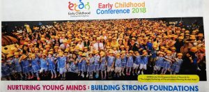 At the finale of the ‘Start Small, Dream Big’ conference on 5 Oct 2018, President Halimah Yacob joined the teachers and preschoolers to hit 1318 in the largest group photo with everyone wearing an orange bucket hat. The conference at Suntec City was organised by the Early Childhood Development Agency.