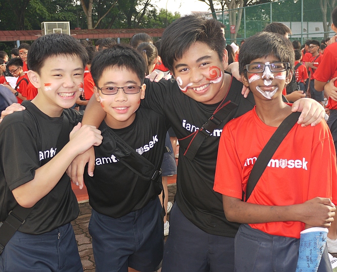 Temasek Secondary School celebrated National Day on 7 Aug 2013. All the students were given red and white paints and while most painted a simple representation of the national flag on their faces, some people came up with the most garish designs. After 30 minutes of laughing at each other and taking selfies, 1,028 students and staff gathered for a memorable group photograph.