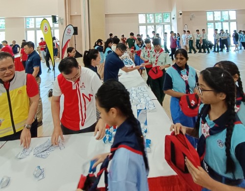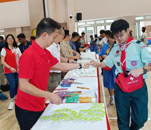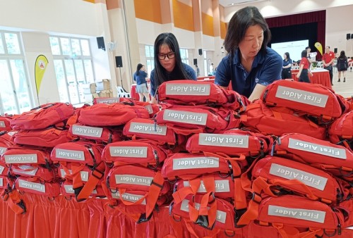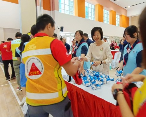 People’s Association launched the Youth Community Emergency Response Team in collaboration with Singapore Scout Association and Girl Guides Singapore at Ulu Pandan CC on 26 Oct 2025. At the event, 186 participants formed a human train to pack 1,000 first aid pouches which will be needed during emergencies.