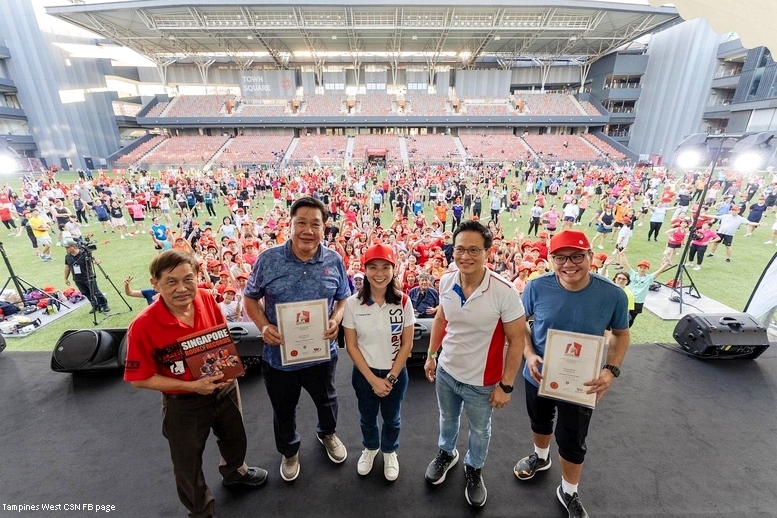1,001 people turned up to celebrate SG60 at Our Tampines Hub by standing in position to form the word. Thereafter, participants went on to do a KpopX Fitness workout led by its founder Maddy Lim. The event on 16 Aug 2025 was organised by the venue and Tampines West CSN.