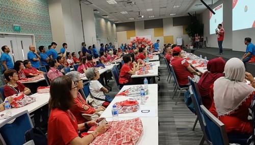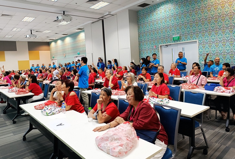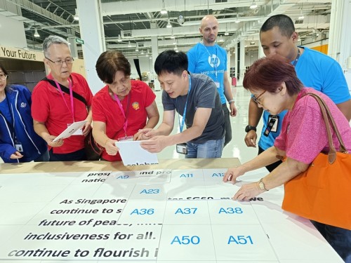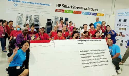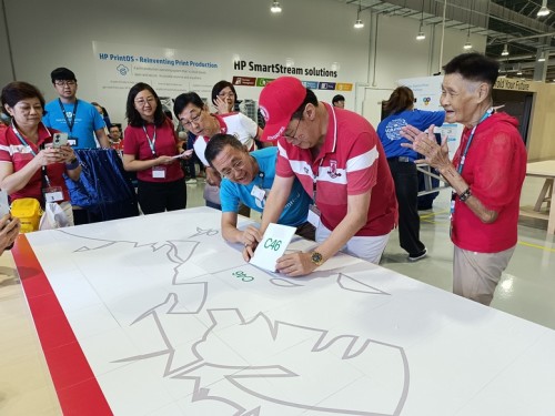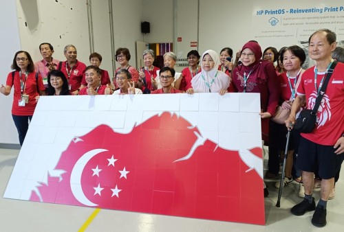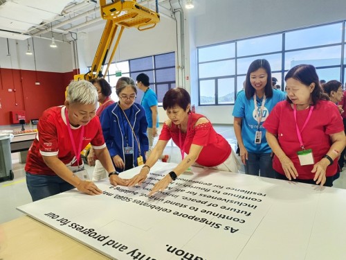 As its CSR contribution, HP Singapore invited senior citizens from Fei Yue to celebrate National Day at its Tuas premises. There were games and lunch, as well as the fun of assembling a huge 5.2m-by-2.4m jigsaw puzzle on 28 Jul 2025. The puzzle featured the Singapore map and pledge, and participants gladly signed on it.