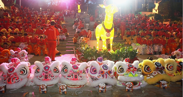 Kun Seng Keng (KSK) Lion and Dragon Dance Troupe celebrated its third anniversary on 8 Dec 2013 at the Lake of Dreams, Resorts World Sentosa. 118 special guests were present to dot the eyes of the lions, a traditional ritual for all new lions. After the lions were awakened, guests proceeded to the Compass Ballroom for a grand dinner where more acrobatics feats were demonstrated.