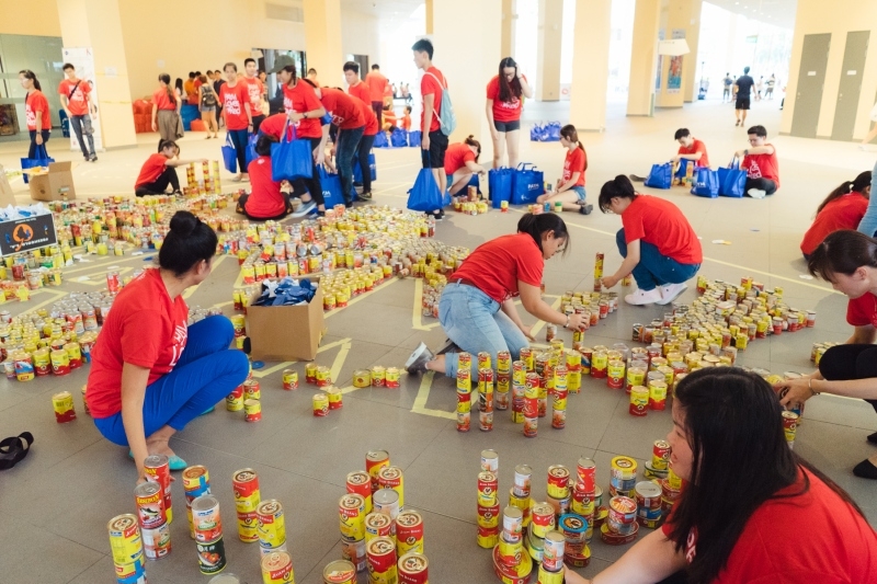 For their annual Project KAN, members of Kg Chai Chee CC YEC collected canned foods from many homes and companies for distribution to needy families living in the East Coast GRC. Before despatching them out, 13,752 cans were arranged to form the PA Youth Movement logo at the newly opened CC, Heartbeat@Bedok on 13 Aug 2017. The logo measured 15.5m by 15.5m.