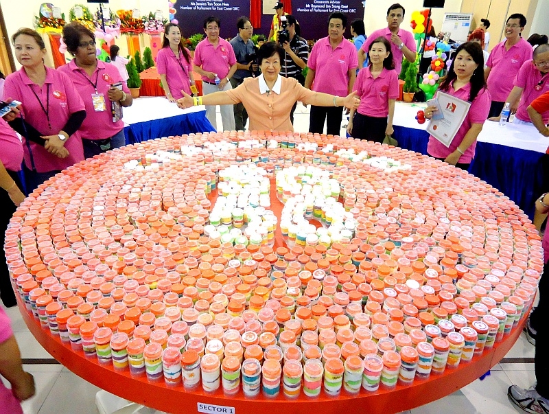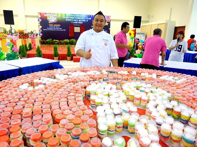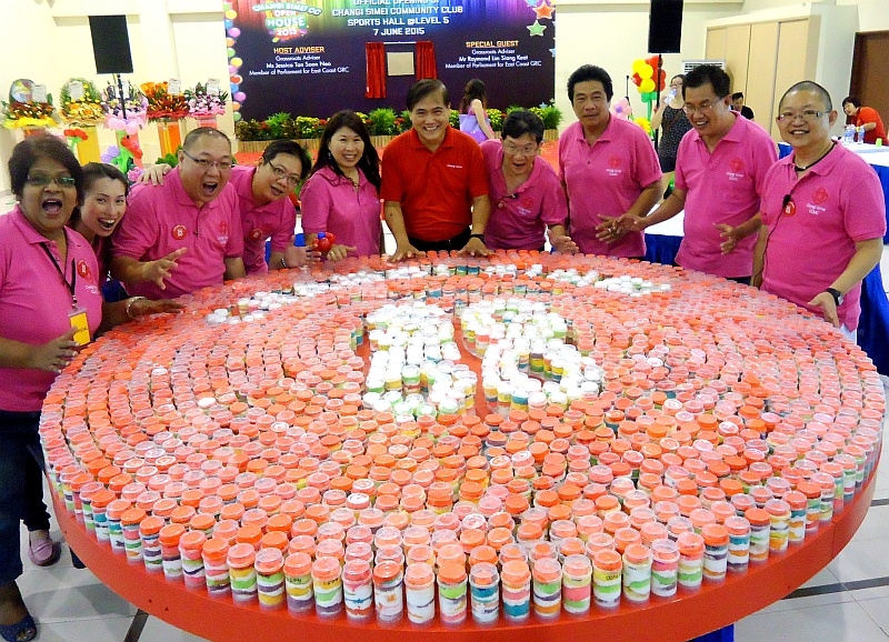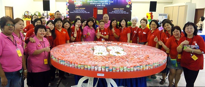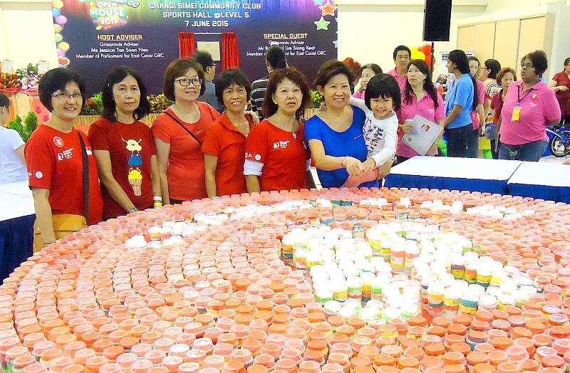 On 7 Jun 2015 at Changi Simei Community Club Open House, residents put together 1,406 push cakes together to form an SG50 logo which measured 2.3m in diameter. The cakes were made by residents during their baking lessons at the CC’s new state-of-the-art homecraft room. The cakes were displayed at the sports hall located on the 5th level which was officially opened that day.