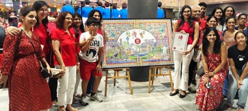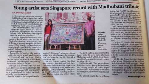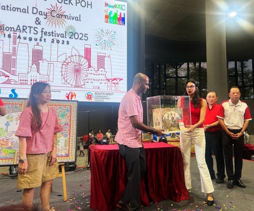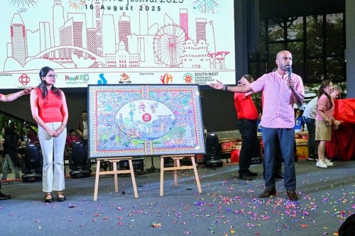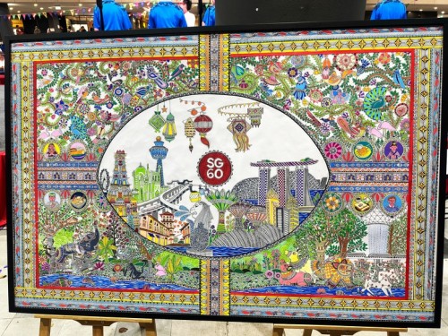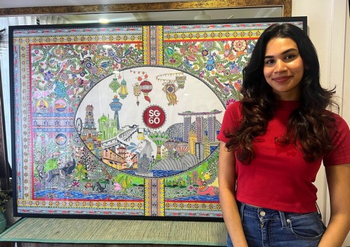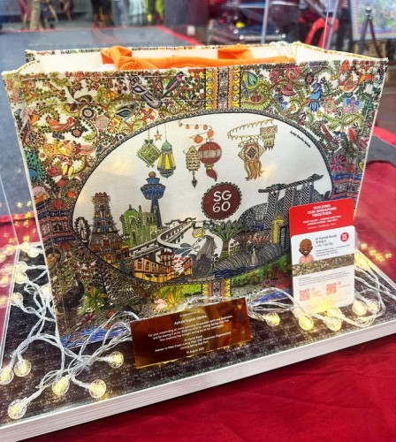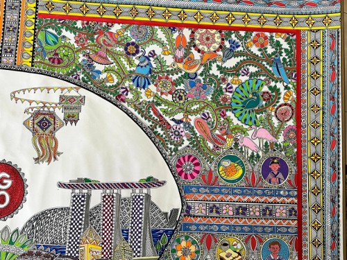 Devika Yogest Aphale, 22, spent 4 months doing a 1.56m-by-1.03m Madhubani painting, an Indian folk art going back 2,500 years. Using acrylics and marker pens, the recent SIM-RMIT graduate weaved Singapore’s iconic images into the Madhubani’s style of nature, geometric patterns and bold lines. On completion, she donated the masterpiece to Jurong Spring CC on 16 Aug 2025, for the community to enjoy its beauty.