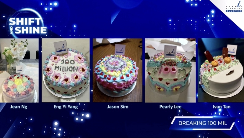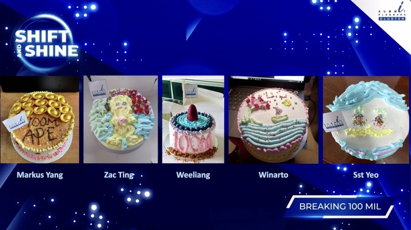 Summit Planners Cluster is one of the leading clusters representing Manulife Financial Advisers. It started in 2015 with less than 100 consultants and has grown to over 500 now and heading towards $100 million in sales production. At its Q4 Cluster meeting on 8 Oct 2021 over Zoom, 415 consultants decorated cakes together with materials provided by the group, and with many stating their aspirations on the cakes.