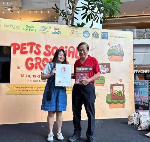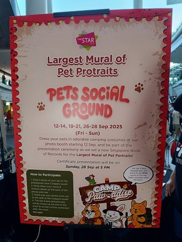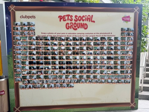 For the third consecutive year, The Star Vista set a new record at its pets fiesta. Owners and their pets had their photos taken professionally at the mall. 302 of the photos were then printed and displayed on a huge board measuring 2.7m by 2.0m on 28 Sep 2025.