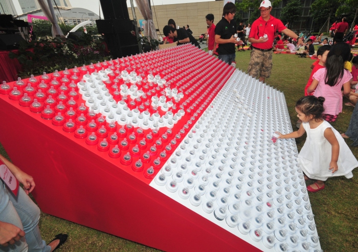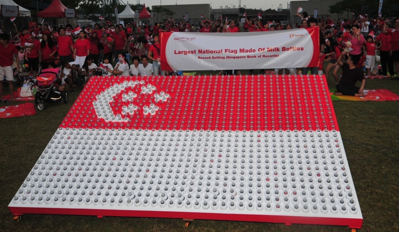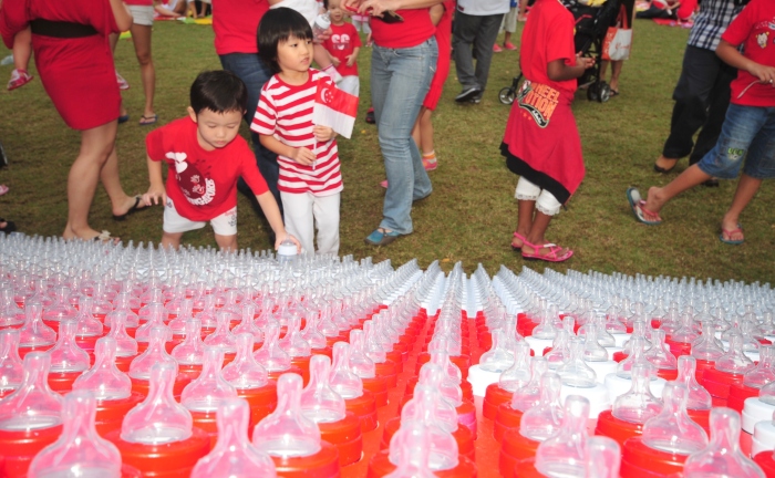 Baby’s Day Out was organised by the NTUC U-Family on 4 Aug 2012 at the Lawn@Marina Bay. It was meant to be a day for babies and toddlers to celebrate the nation’s birthday with their parents in style. Advent sponsored 1,120 milk bottles to make a Singapore flag, measuring 2.1m by 3.2m. It was perhaps an auspicious act for more babies to be born in Singapore.