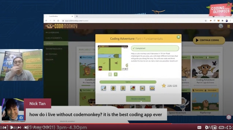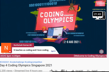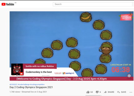 Coding Olympics Singapore 2021 was the first ever coding competition jointly organised by Science Centre Singapore Global and MangoSTEEMS. The virtual event, held from 2 to 6 Aug 2021, provided beginners’ coding lessons to Primary 3-6 children. A total of 1,416 took part.