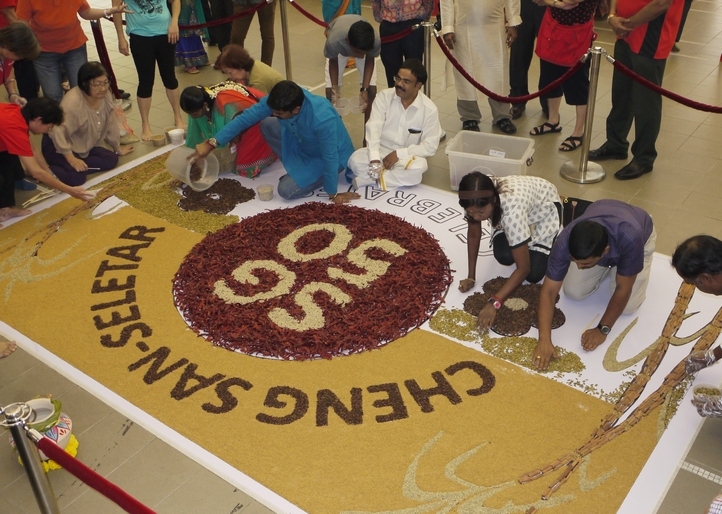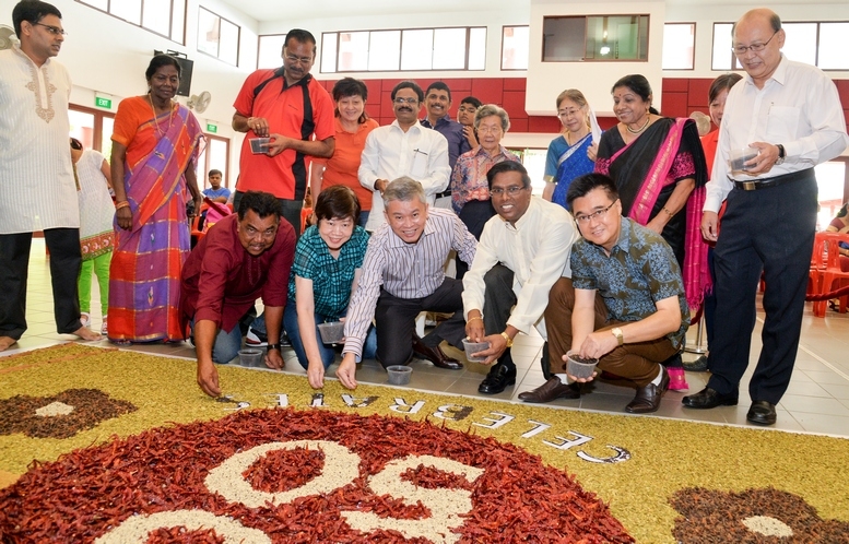 On 25 Jan 2015, the IAEC of Cheng San-Seletar celebrated the pongal festival as well as SG50 by creating a fragrant rangoli using Indian spices at the CC hall prior to a cultural show held there. The 4.1m by 2.5m rangoli used turmeric, fennel, fenugreek, pepper, cloves, cardamom, cinnamon, coriander, red chilli and star anise.