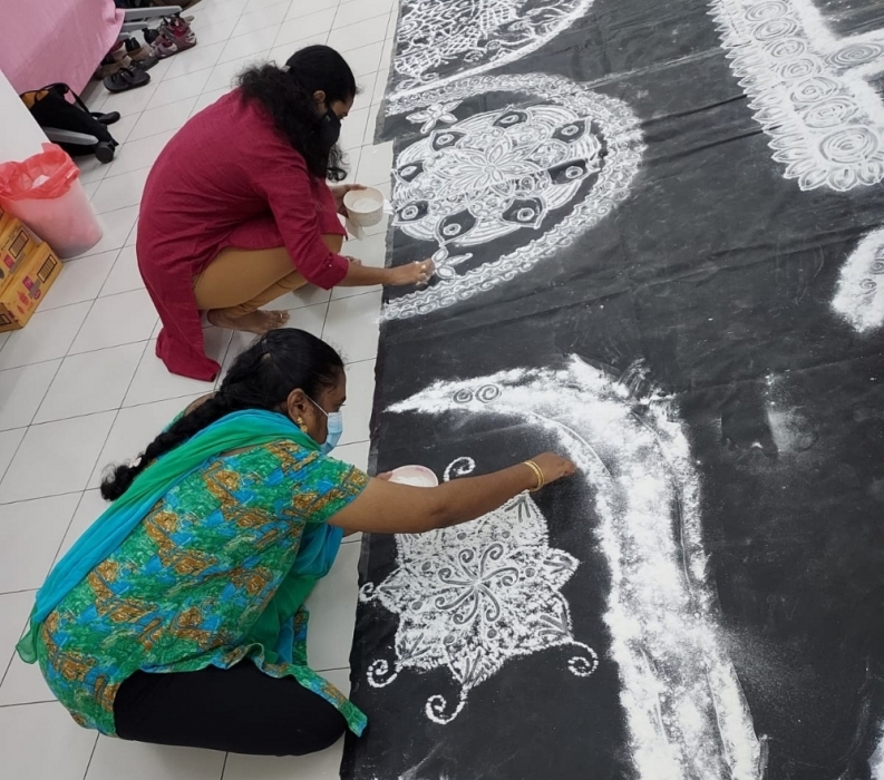 Singapore Women’s Association hosted another record led by Vijaya Mohan and her team of volunteers who went down at separate times to do up the large kolam. Jointly organised with the Tamil Language Council on 1 May 2021, the ‘Tamil’ word measured 5.8m by 3.0m.