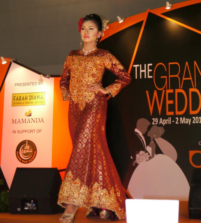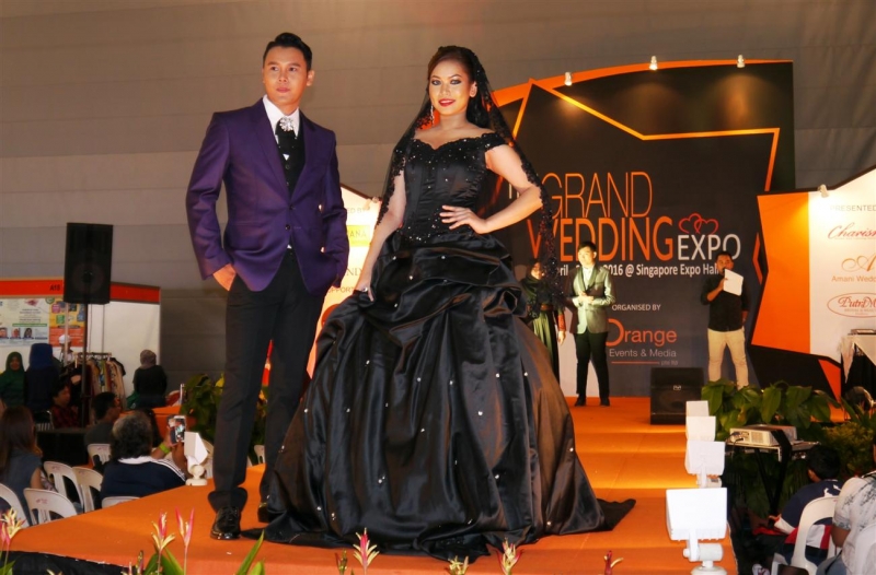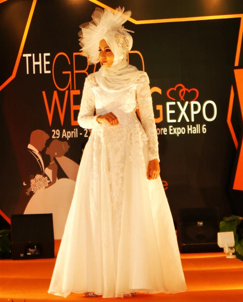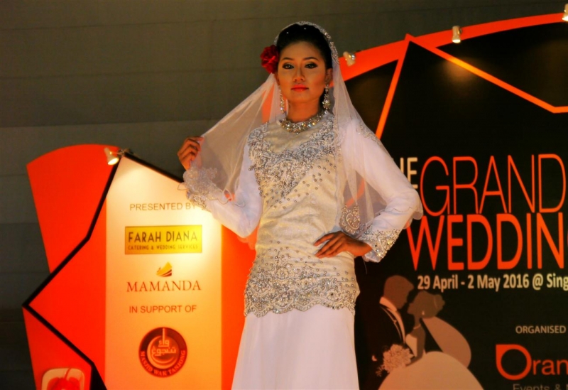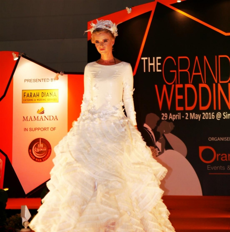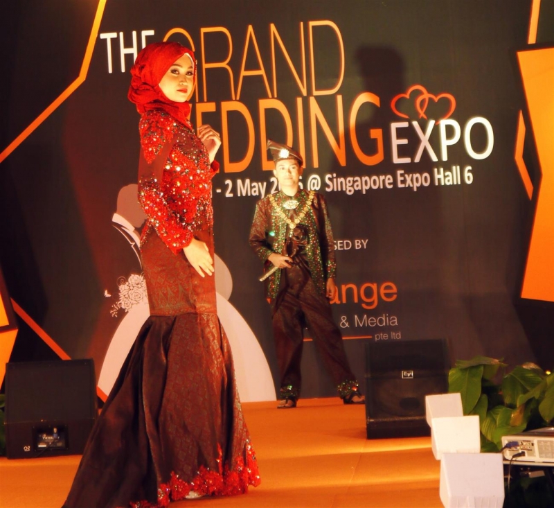 At the Grand Wedding Expo, models sashayed down the stage with 65 bridal dresses and groomswear, most of them culturally suited to Malay weddings. Organised by Orange Media and Events, the catwalk lasting 2 hours was held at the Singapore Expo on 30 Apr 2016.