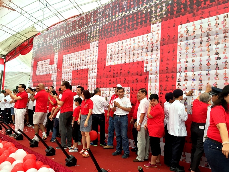 Woodgrove Sports Mega Park was one of the 82 locations where National Day Observance Ceremony was held. Many people turned up on the morning of 9 Aug 2015 to take part in the ceremony. One of the highlights of the event was a huge display of residents’ photos to form the words ‘Woodgrove Celebrates SG50’. Over 3,000 photos were used in the 11m by 3.9m display.