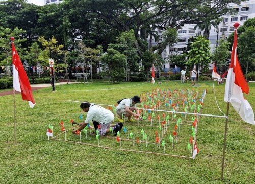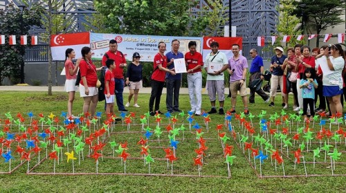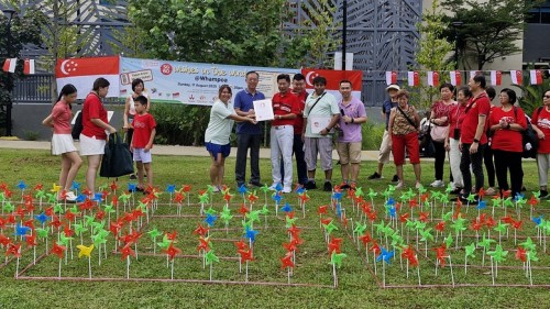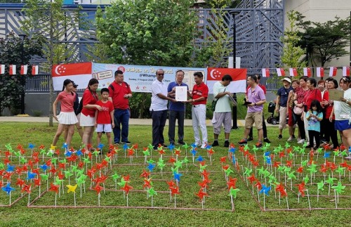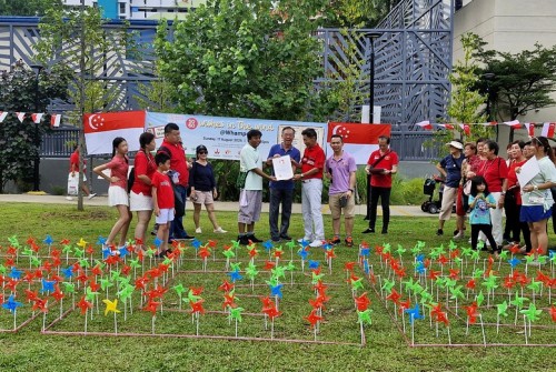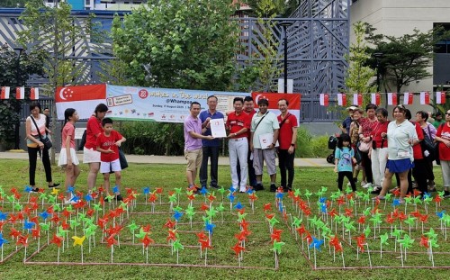 Whampoa Lorong Limau RN and Whampoa Rajah Court RN came together to make pinwheels to commemorate Singapore’s 60th National Day. On 17 Aug 2025, they made and arranged pinwheels to form the word ‘SG60’. The formation measured 3m by 10m at Whampoa Park.