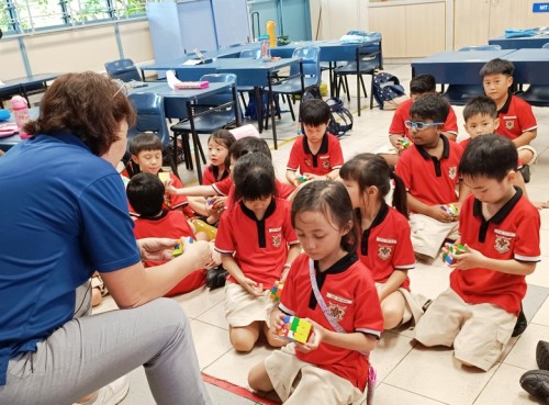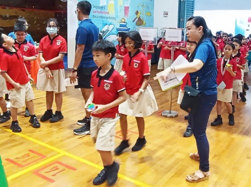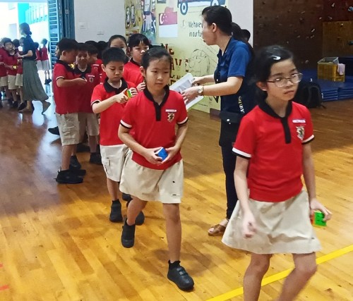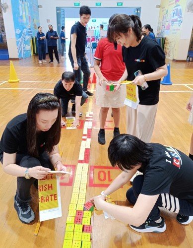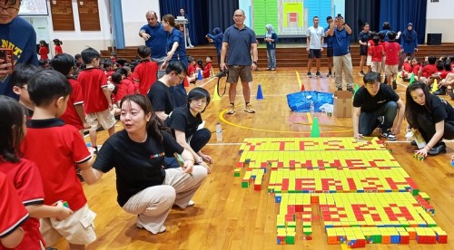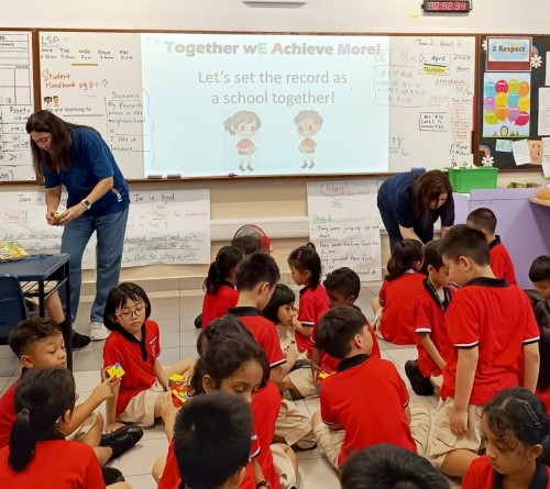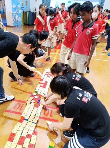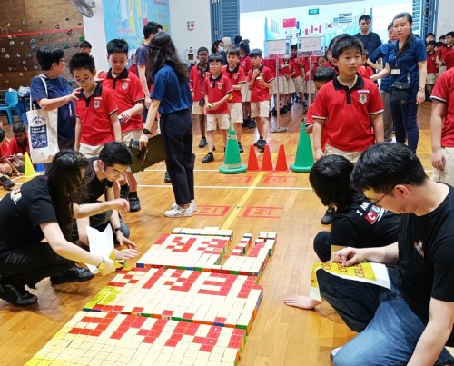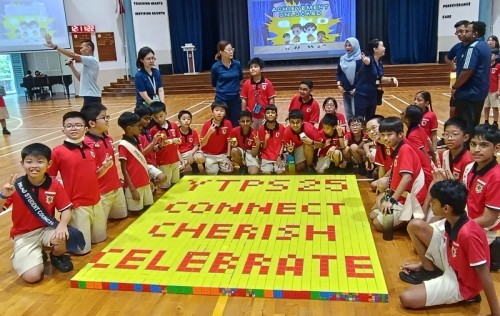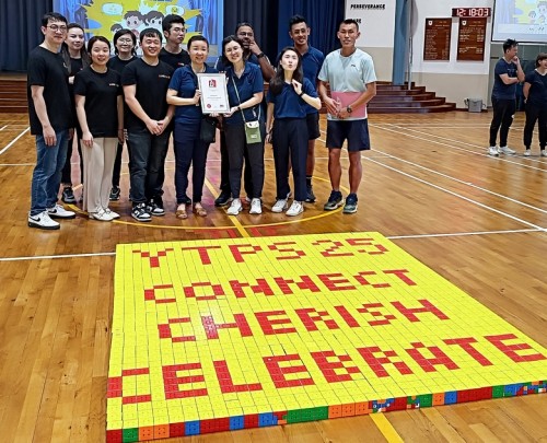 To mark its 25th anniversary, Yew Tee Primary School had all its students to complete at least one side of the Rubik’s cube. The cubes were then brought down to the hall where staff from Mofunland helped to arrange them to form the words ‘YTPS 25 – connect, cherish, celebrate’. A total of 1,512 cubes became the new record on 18 Apr 2024.