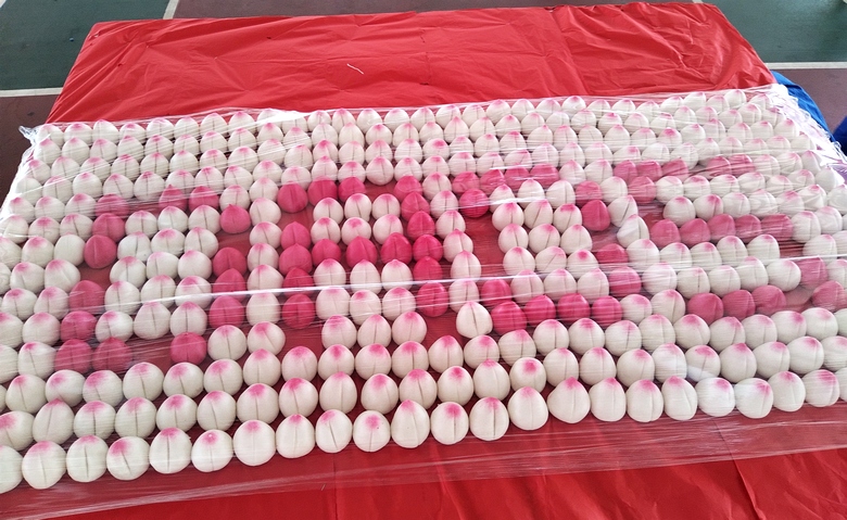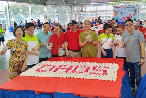 Nee Soon South celebrated Father’s Day on 9 Jun 2024 at MPC@Khatib. The CC displayed the word ‘DADS’ made with 406 traditional longevity buns, known in Chinese as shou dao. The display measured 88 by 172 cm.