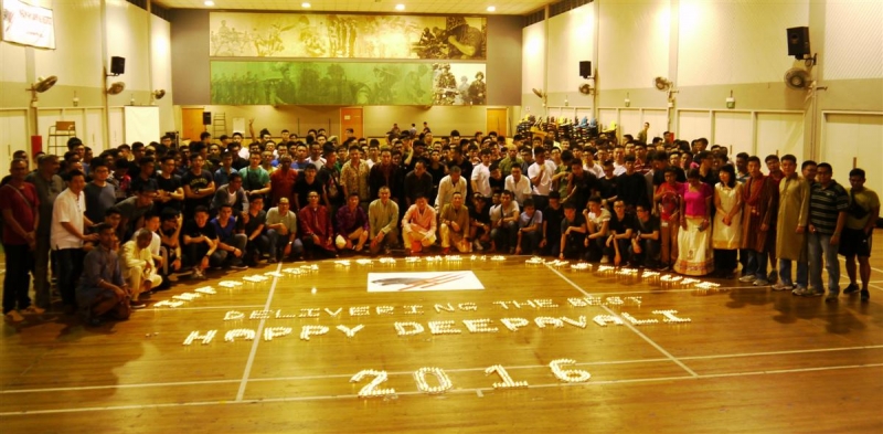 Soldiers from the Infantry Training Institute in Jurong were given a break from their exercises for a Deepavali celebration on 24 Oct 2016. About 50 men lighted up 2016 tealights to form the words ‘Infantry Training Institute, Delivering The Best, Happy Deepavali 2016’. After the words were formed , the institute trainees were treated to a Deepavali dinner and concert.