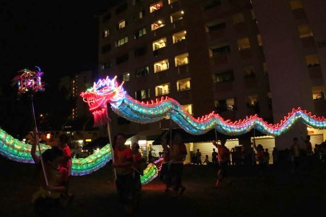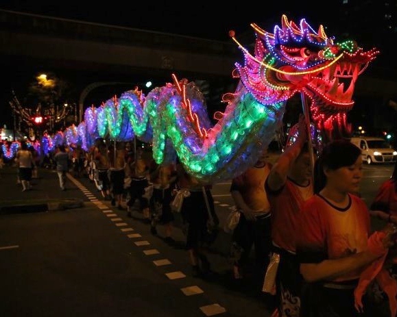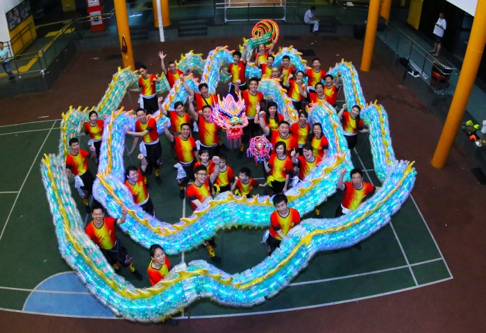 Last year the Bukit Panjang CC Dragon & Lion Dance Troupe and Stamford Dragon & Lion Dance Troupe created Singapore’s first dancing dragon using drink cans. This year they made a 49m dragon from 3,544 disposable plastic bottles. Running along the body were also many lines of colour-changing LED lights. The dragon made its debut on 13 Jan 2013 at the Bangkit Road Food Centre.