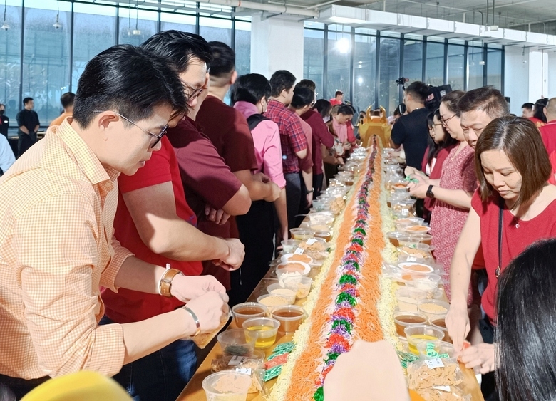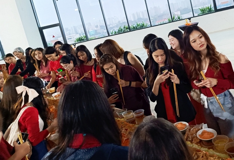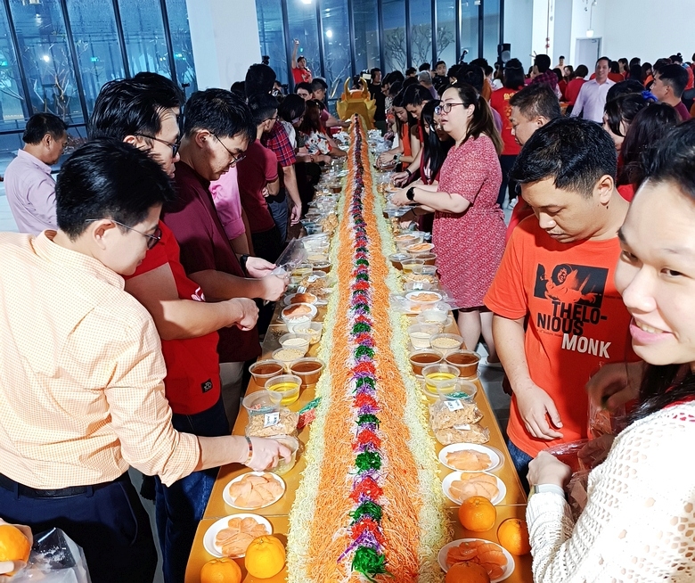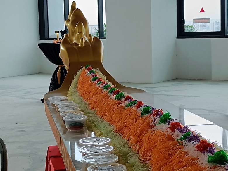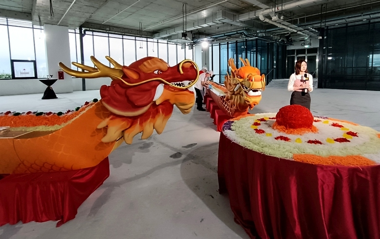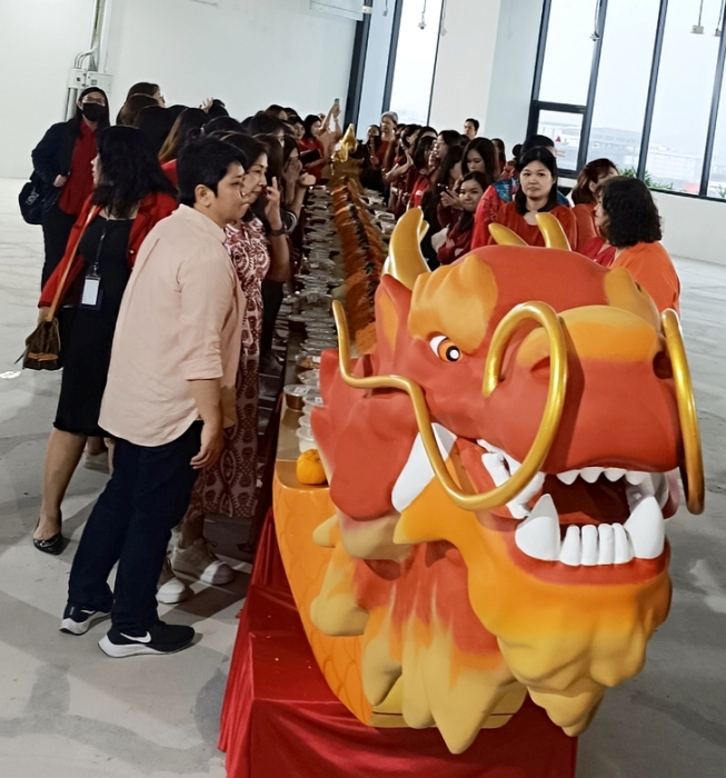 For the coming year of the dragon, Neo Garden Catering created a new lohei concept – tossing the yusheng on a custom-made dragonboat. On 24 Jan 2024 in its new building, the company launched the concept for its own staff with a pair of dragonboats measuring 12.5m in length.