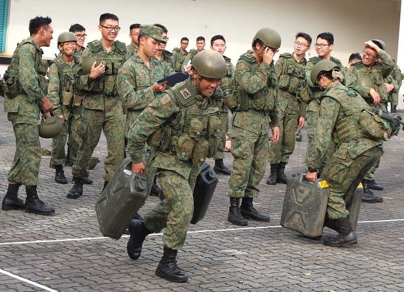 To commemorate its 48th Anniversary, the 21st Battalion Singapore Artillery had its men do 50m relay laps carrying 2 water -filled jerry cans. Each jerry can weighed 19 kg and about 300 men completed a total distance of 214.8 km in one hour. The strenuous record was set at Kranji Camp II on 6 Jul 2018.
