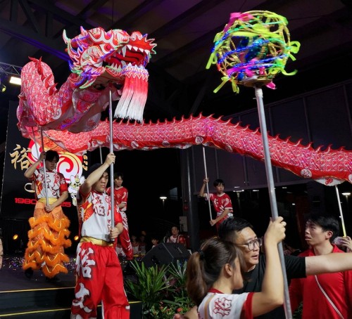 Taman Jurong CC Juboon Dragon & Lion Dance Troupe celebrated its 45th anniversary by displaying a 140m LED dragon dance on 22 Nov 2025 at its dinner in Taman Jurong Park. The dragon had its eyes ‘opened’ by President Tharman who was the former grassroots advisor to Taman Jurong. The dragon was custom-made with the iconic SG lion head motif on the fabric. Residents participated by stamping the SG60 logo throughout its body.