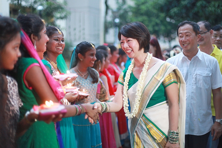 A small procession led by MP Foo Mee Har, grassroots leaders and Indian drummers walked past residents standing in a circle around Teban Gardens neighbourhood park on 9 Nov 2013. 797 people of diverse backgrounds, each holding a plate of two diyas and flowers, formed the circle. The Deepavali celebration was organised by Ayer Rajah Zone 3 RC.