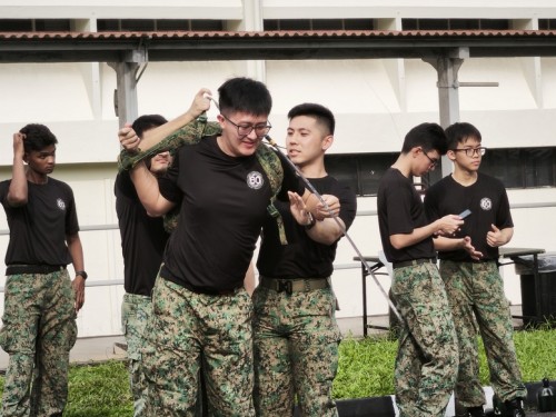 About 160 servicemen from Signal Institute walked a total of 60 km with a 16-kg radio set to commemorate the Signals Formation’s 60th Anniversary. Formed into 14 teams, a team member would walk a lap of 100m before passing the equipment to the next member. The event was held at Stagmont Camp on 5 Mar 2026.