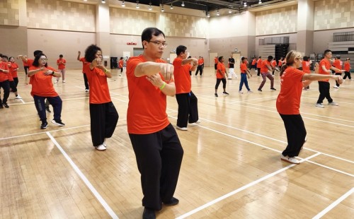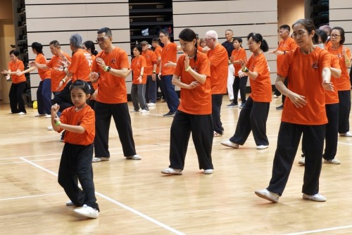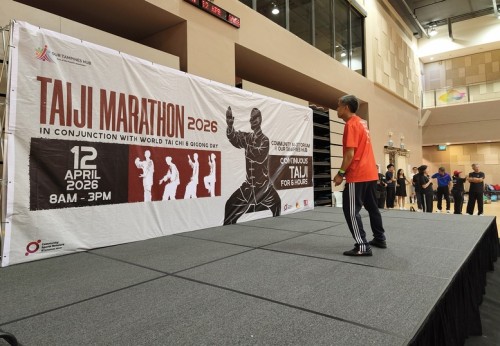 To commemorate World Taiji & Qigong Day, Tampines West CSN, Chong Pang CSN and Our Tampines Hub held a 6-hr non-stop taiji marathon on 12 Apr 2026. It started with 586 enthusiasts and after 6 hours, 280 were still making the moves in the OTH Community Auditorium. Participants were allowed only a 5-min break after every hour.