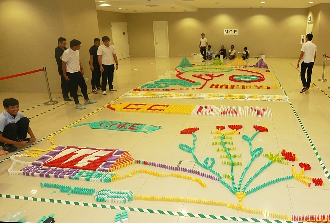 ITE College Central School of Engineering organised a domino toppling competition on Teachers’ Day, 5 Sep 2013. Four teams were in the finals on that day and the MET team emerged winners. 15,730 tiles out of the 15,884 tiles they spent 2 days setting up, fell in a superb coordinated succession. The domino tiles were made by ITE’s own plastic moulding machines.