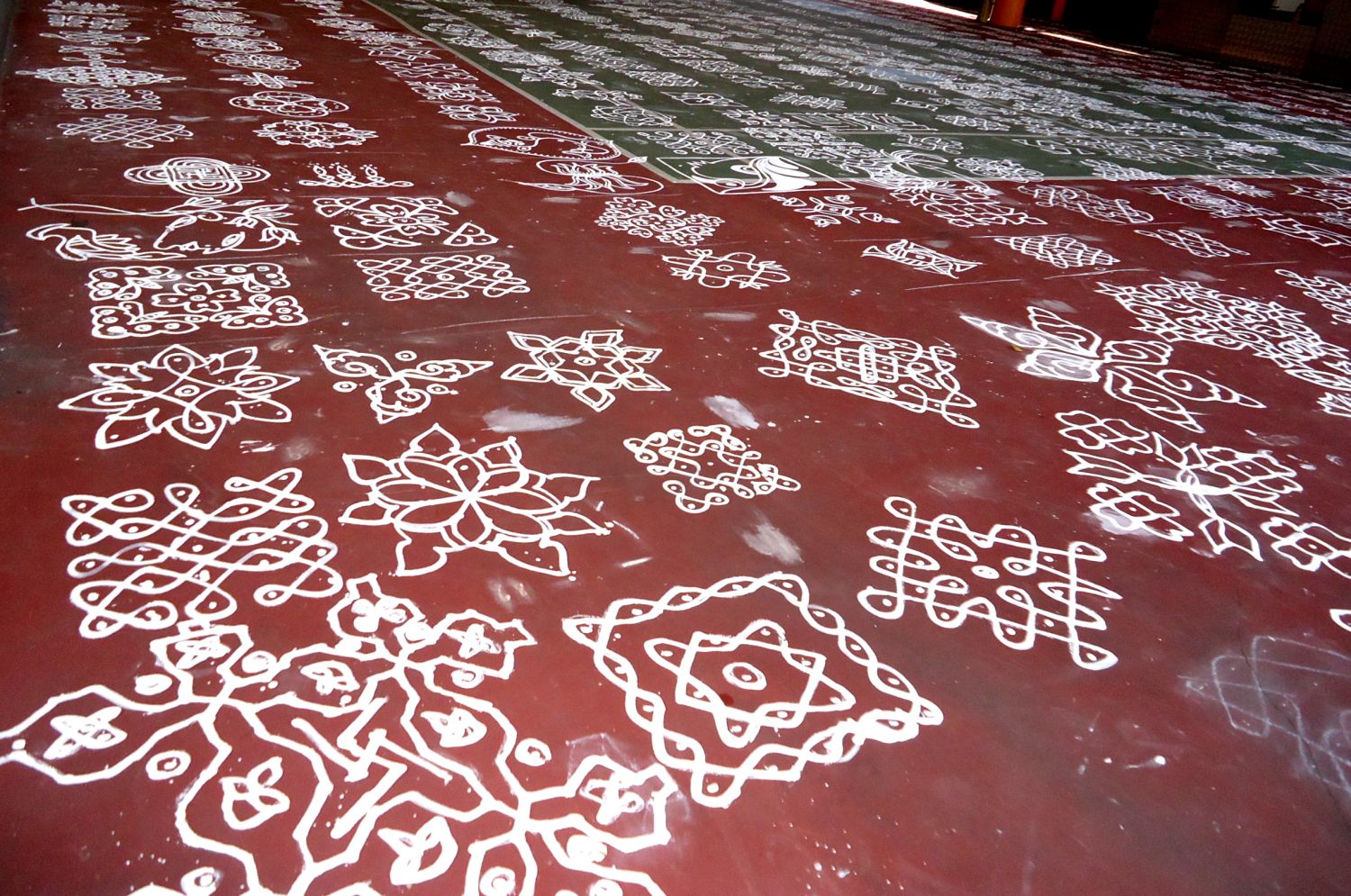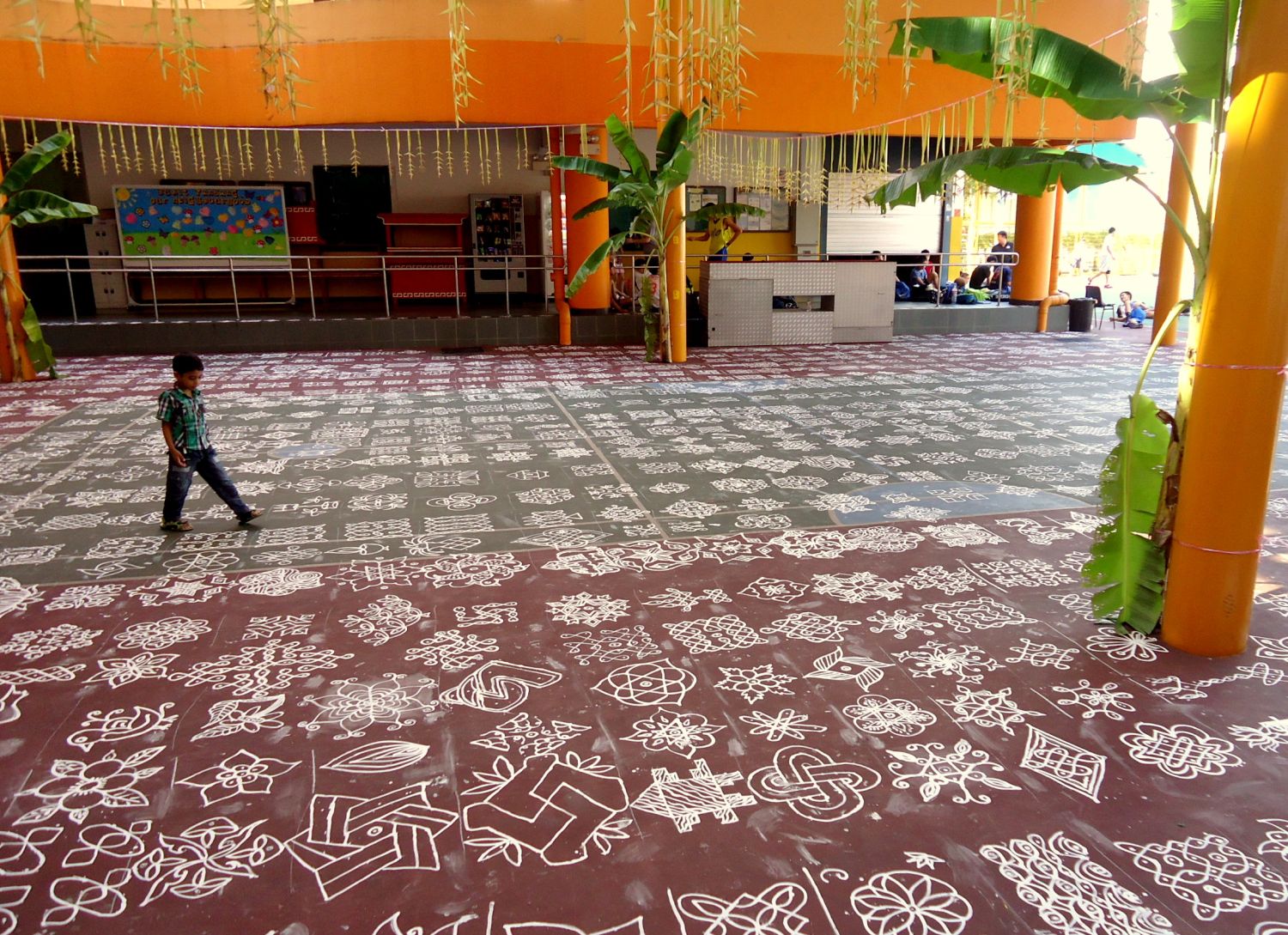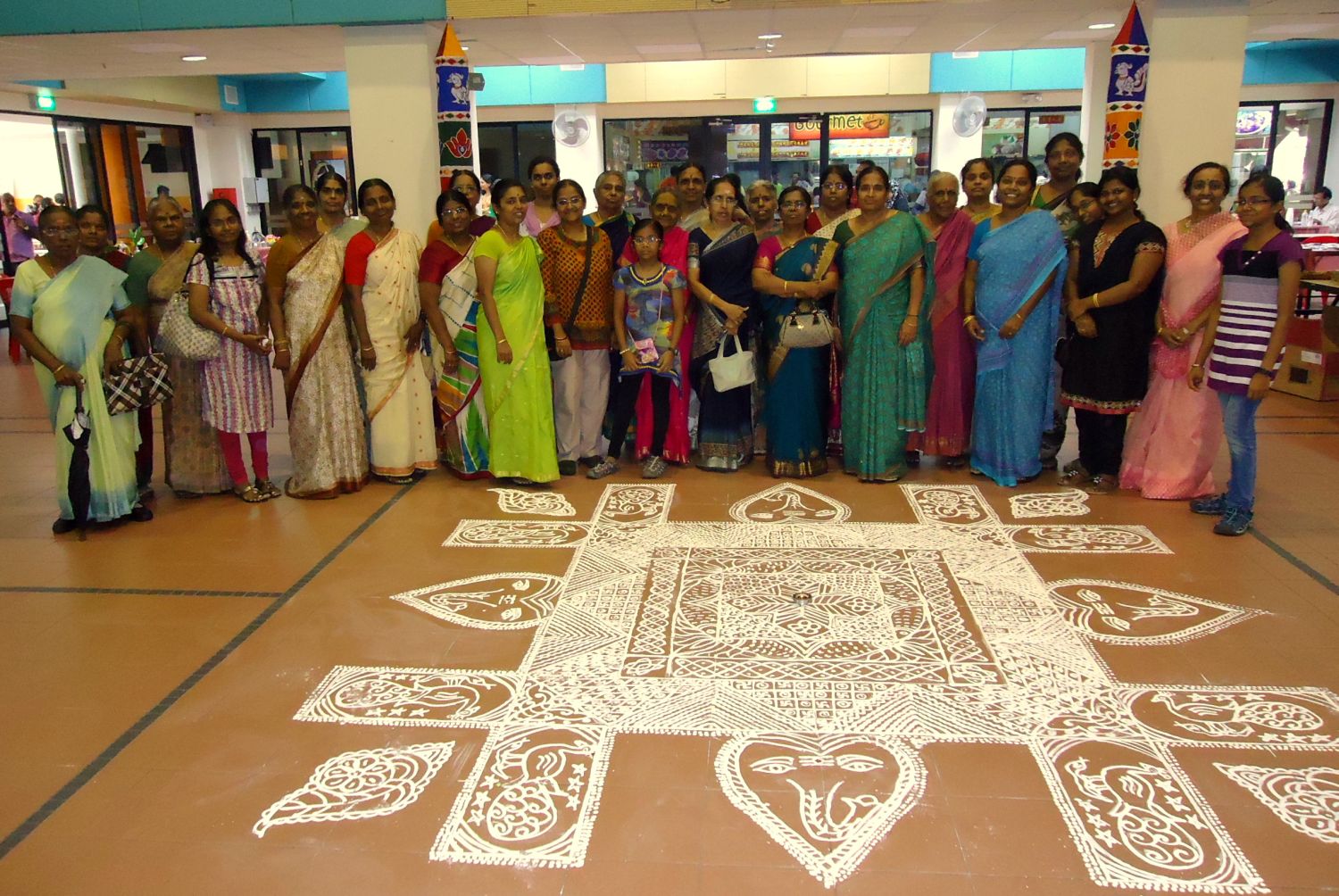 On 20 Apr 2013, members of Bukit Panjang IAEC, with the help of volunteers from Tank Road temple, spent a few hours drawing 1,100 intricate designed kolams at the community centre’s sports court. Rice powder and water were used to draw the kolams. The drawing of the kolams was part of Bukit Panjang constituency’s Tamil New Year celebration.
