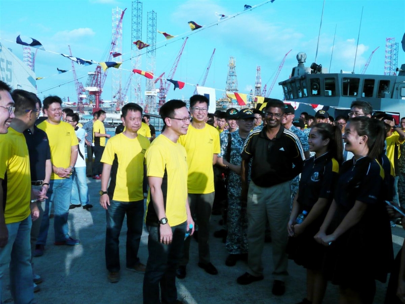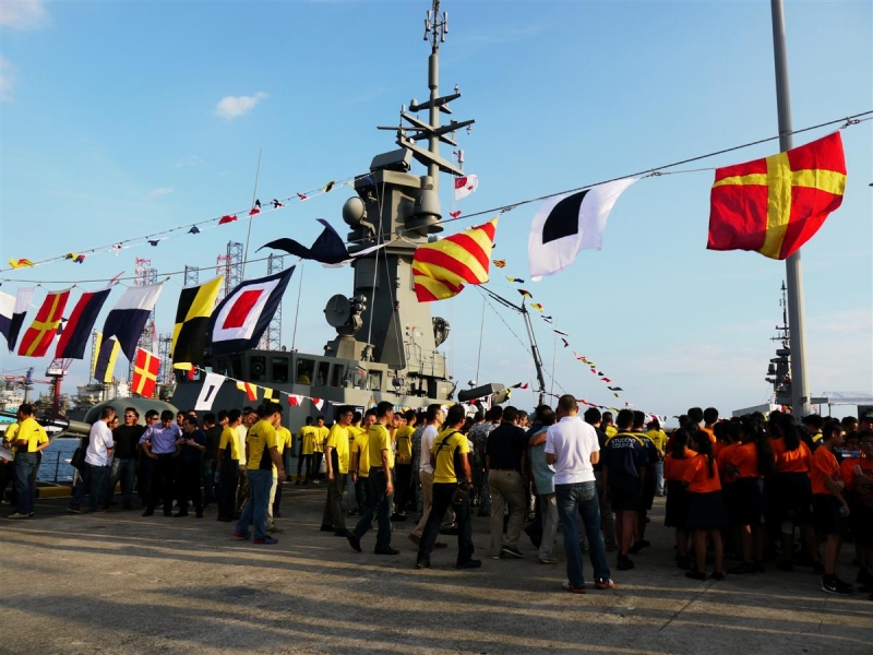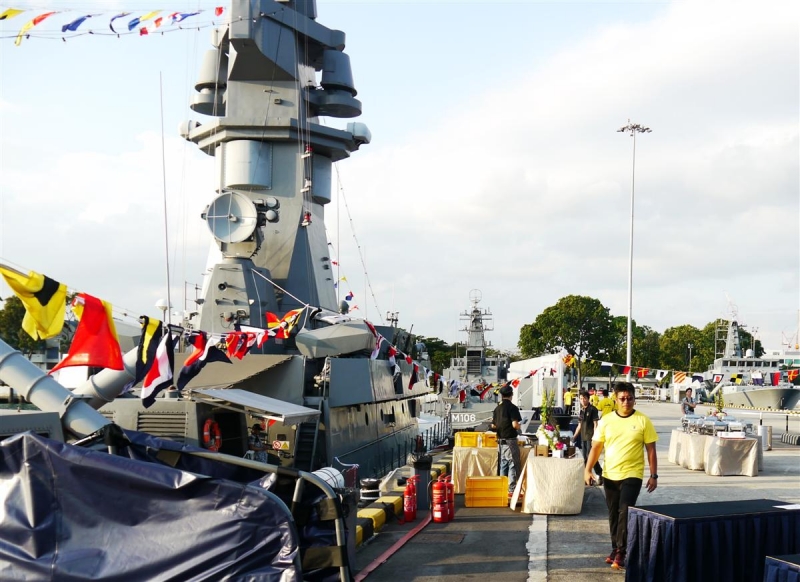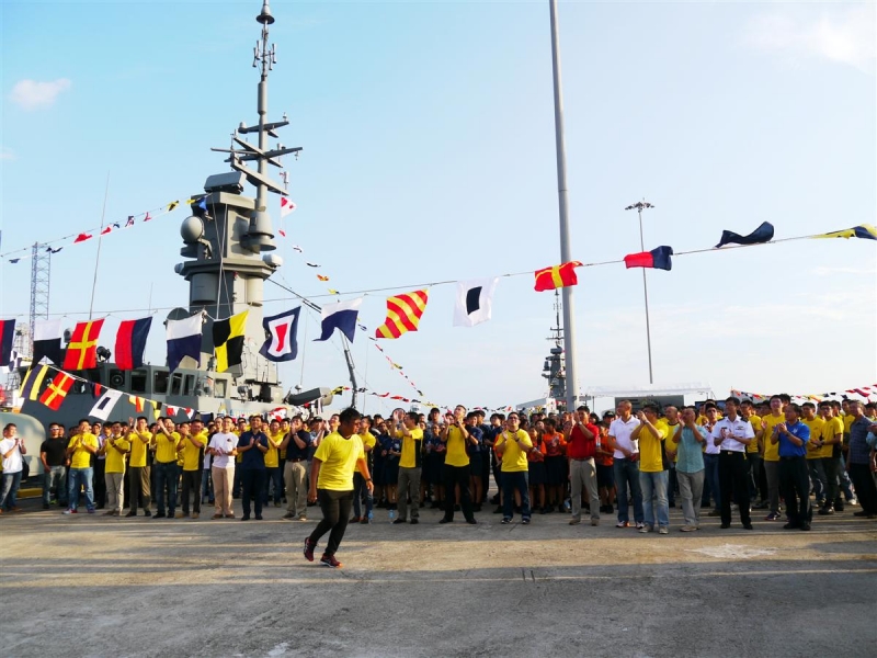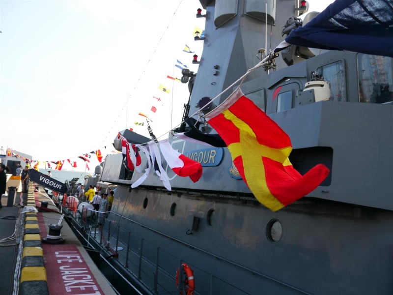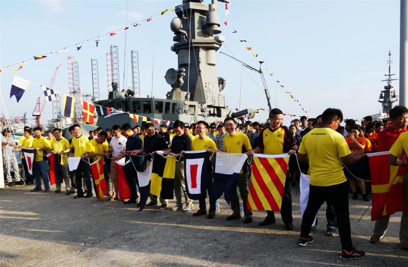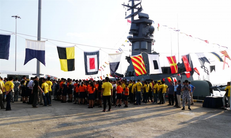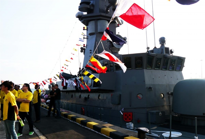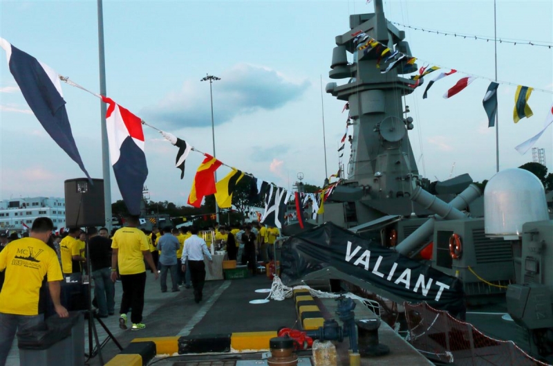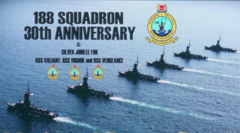 The Singapore Navy 188 Squadron celebrated its 30 anniversary at the Tuas Naval Base on 18 Aug 2016. It was also the 25th anniversary for 3 of its ships: RSS Valiant, RSS Vigour and RSS Vengeance. To mark the occasion, a 191m line of maritime flags were stringed around the 3 missile corvettes. 188 maritime flags made up the line which also spelled out the Navy’s slogans.