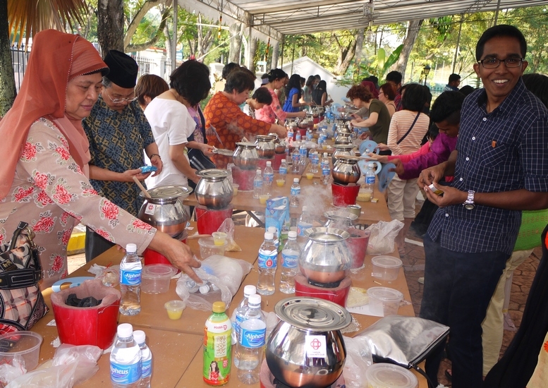 The NTU Tamil Literary Society and Tanglin Community Club Management Committee jointly organised a pongal celebration on 7 Feb 2015. 198 people took part in the pongal cooking at the CC but getting the pongal to overflow seemed a tad challenging. Anyway, 11 managed to cause the aluminium pots to overflow within the given time frame. ‘Pongal’ in Tamil means ‘boiling over’ or ‘overflow’ signifying abundance and prosperity, and cooking the sweetened rice is carried out as a harvest celebration.