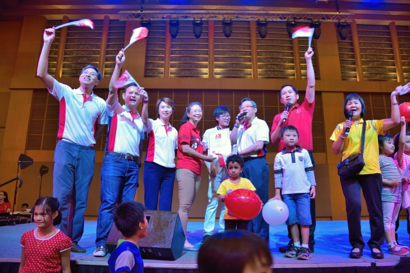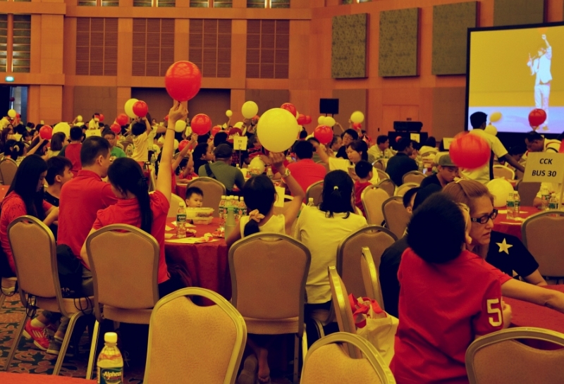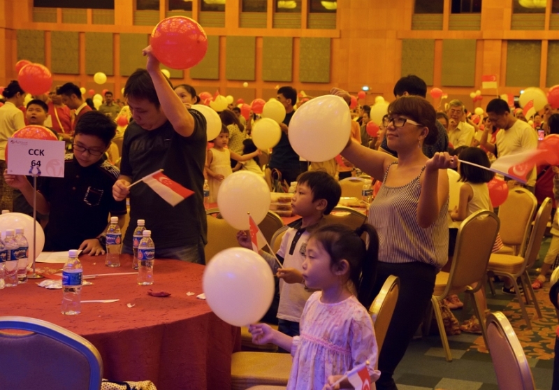 Residents from the Chua Chu Kang GRC had dinner at the RWS Ballroom for their National Day celebrations on 7 Aug 2015. Besides the mass sing-along session, the 2,837 participants also blew up red and white balloons to add to the festive mood.