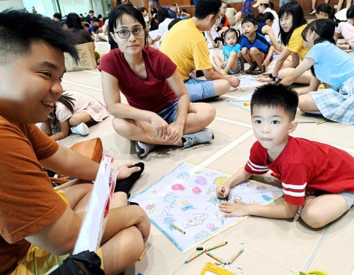 The SCEC of Bukit Timah CC welcomed families to decorate kites together in its hall on 28 Jul 2024. Crayons and kites were provided and the kids were sprawling all over the floor drawing and colouring, mostly to the National Day theme. A total of 322 adults and kids participated.