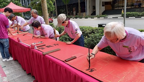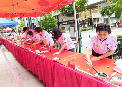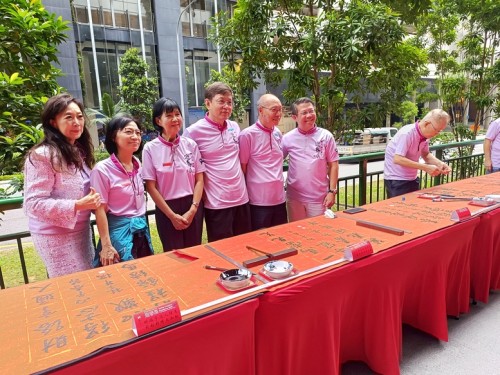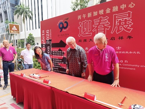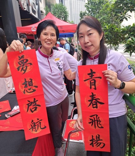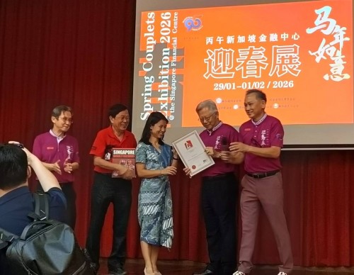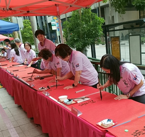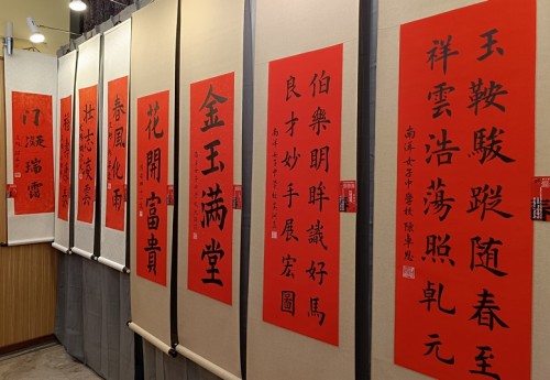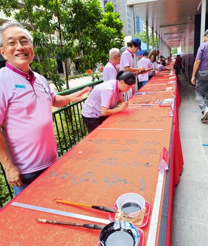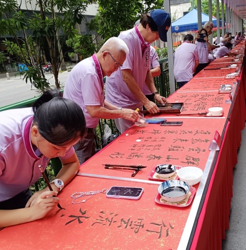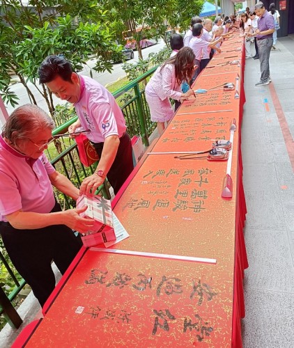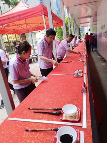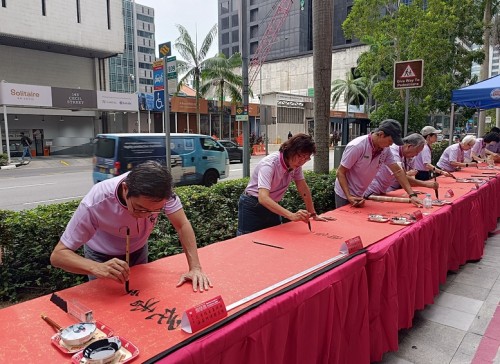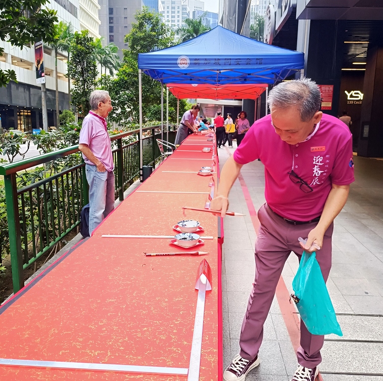 For the third consecutive year, Tung Ann District Guild organised the Spring Festival exhibition at its Cecil Street auditorium. On the opening day, 29 Jan 2026, a total of 108 calligraphers and enthusiasts, aged between 4 and 91, lined up behind a long row of tables to write chunlian simultaneously.