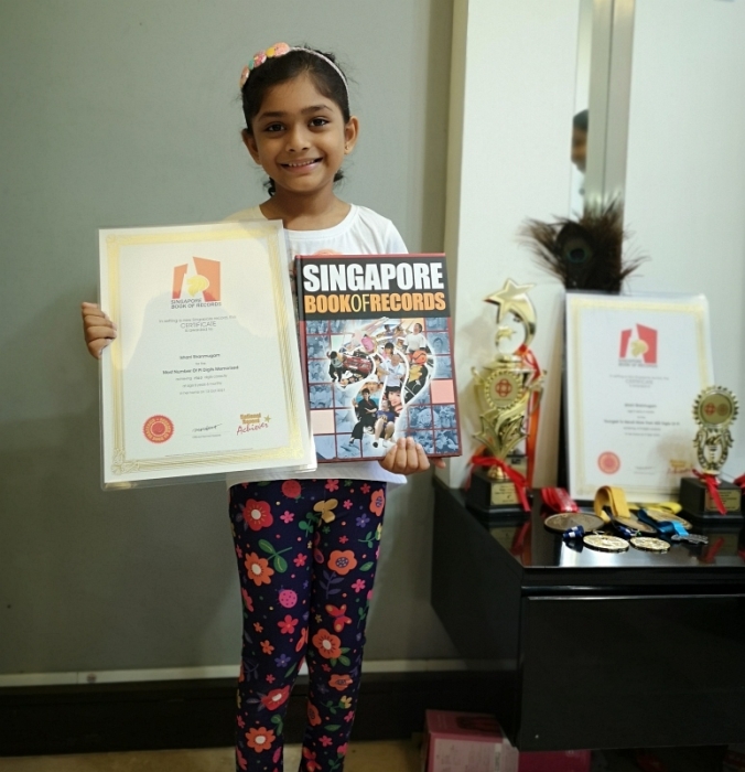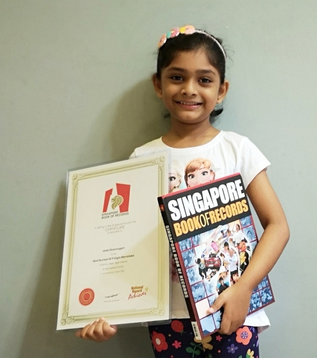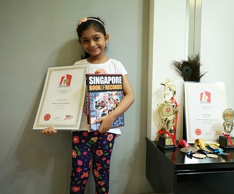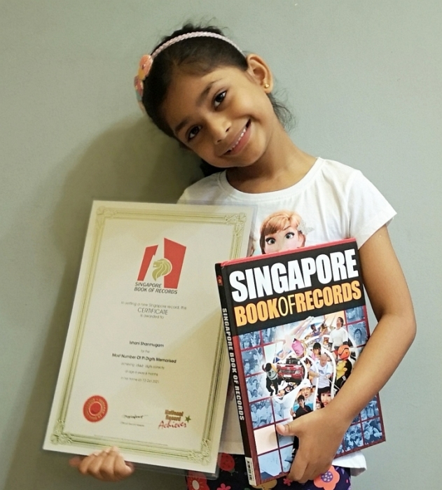 Ishani Shanmugam, a 6-year-6-month K2 child at Sparkletots, successfully recited 1,560 digits of pi without a mistake on 13 Oct 2021 in her home. Pi is an irrational number with an infinite number of digits in its decimal representation. Six months earlier, her parents Shanmugam VS and Vennila started training her on the memorisation. In Sep 2020, she attempted her first record, reciting 409 digits.
